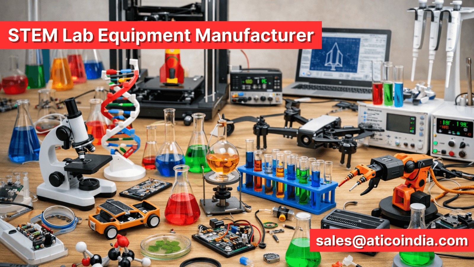 Atico India is a leading Scientific Lab Equipment, Biology Lab equipment, Educational Laboratory Equipment Supplier, offering a wide catalogue of lab Instruments and Equipments in India and worldwide.We design and supply lab equipments for schools, colleges, universities, research labs, and private high tech science labs. Atico India manufactures an entire range of lab apparatuses and lab gears.